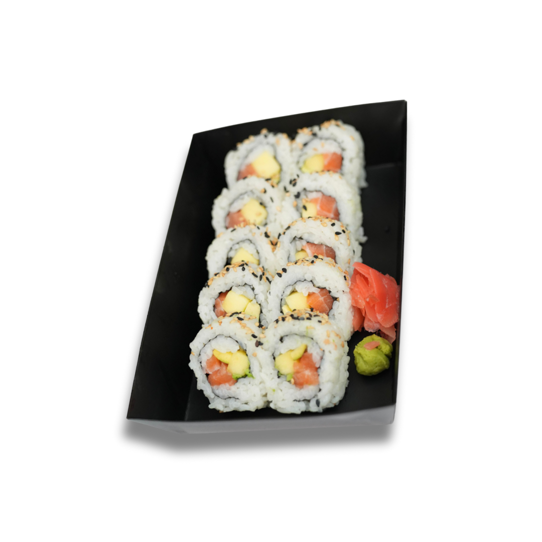 10 pcs. Atlantic salmon, avocado and mango on top sesame seed